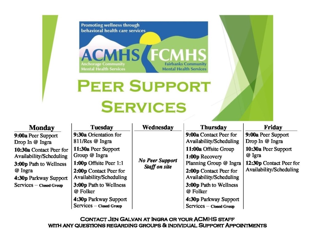 Ramping Up Peer Support Services at ACMHS ACMHS started offering regular peer support groups for adult clients at our Ingra location at the beginning of the year. Now peer support groups are also being offered at the Folker building. Evidence-based support Peer support is an evidence-based practice that has been shown to increase